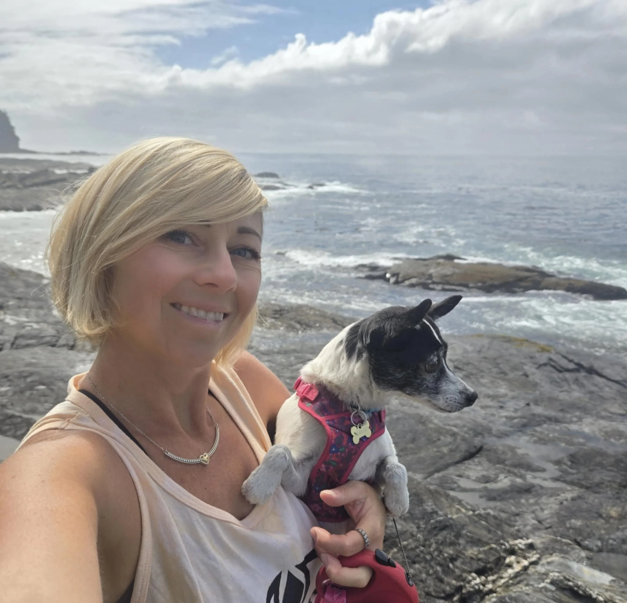 Chica my dog, at Botanical Beach Port Renfrew, BC